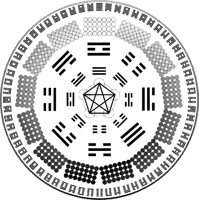 Os 64 hexagramas do I Ching geralmente dispostos ao redor do símbolo do yin-yang, são uma outra maneira de representar a flor da vida.