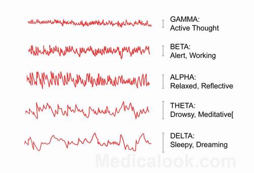 Os cinco tipos de ondas cerebrais conhecidos variam em frequências cuja intensidade é calculada em Hertz (um Hz corresponde a um impulso por segundo).